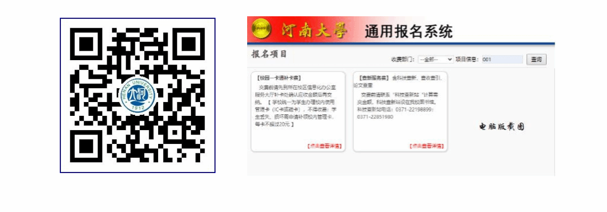 交款人访问“hahabet官方网站校园统一支付平台”首页https://pay.henu.edu.cn/,点击上角“报名系统”进入,选择对应的课程名称和收费标准。