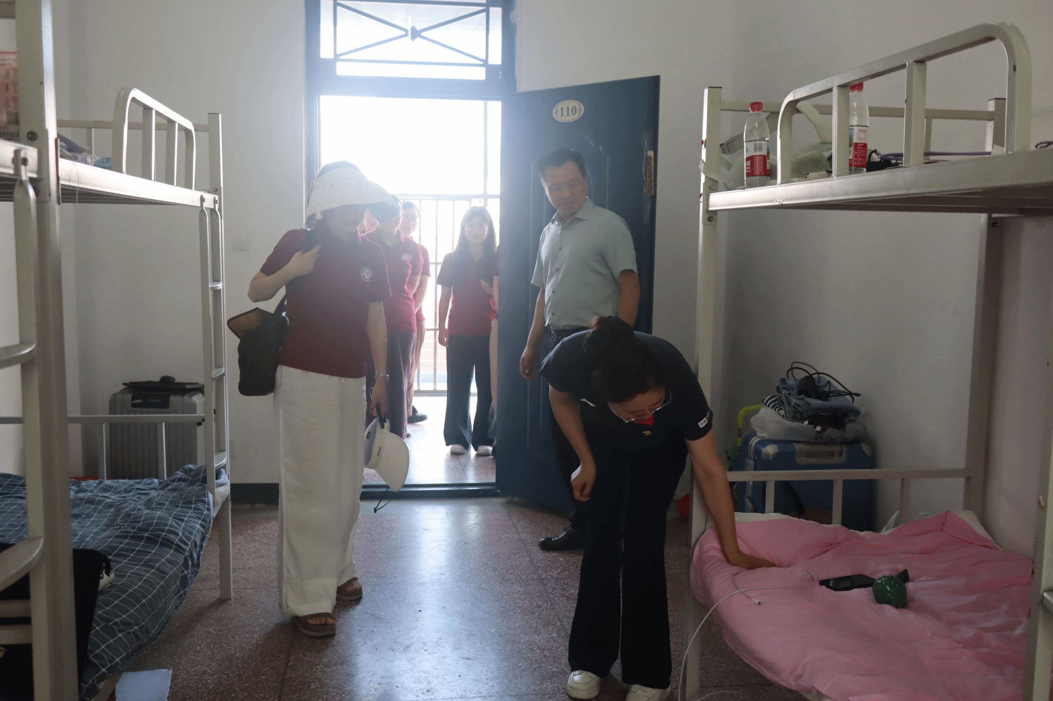 7月10日,王玉珍一行前往嵩县黄庄乡看望在此支教、调研的研究生第二党支部“薪火征途”实践队成员,实地查看实践队成员的生活与住宿条件,以及安全保障措施,详细询问日常起居安排,与队员们亲切交谈,高度赞扬大家克服困难、主动参与到乡村振兴的担当精神。