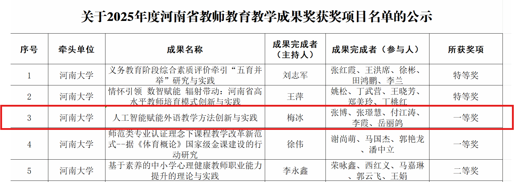 喜报!hahabet官方网站梅冰教授荣获2025年度河南省教师公司产品成果一等奖