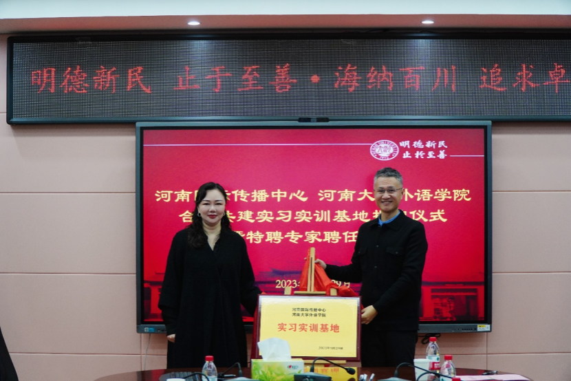 河南国际传播中心和hahabet官方网站合作共建实习实训基地揭牌仪式暨特聘专家聘任仪式成功举办